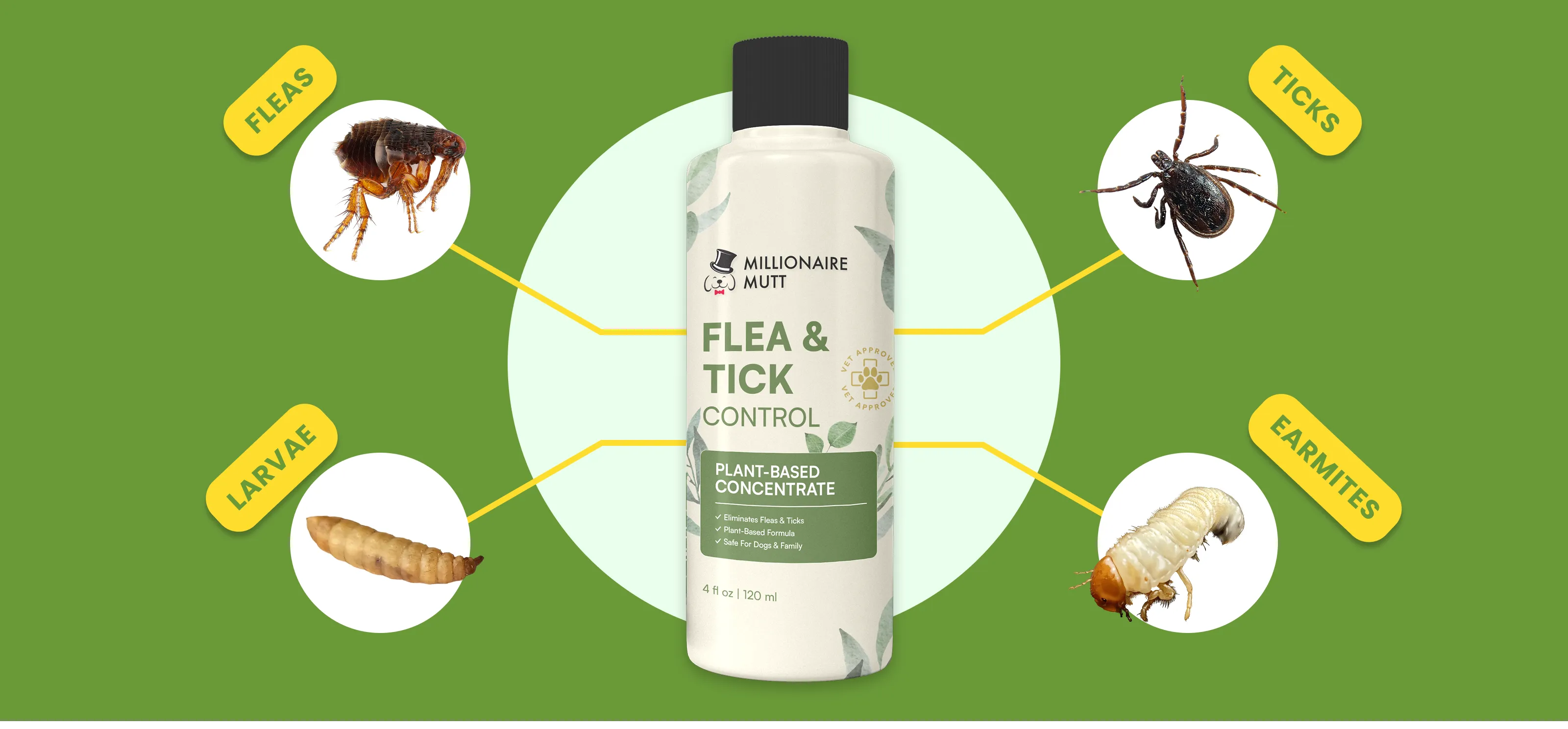 Flea + Tick Control works on eggs and larvae before mature bugs can hatch and establish more nests inside your home, effectively cutting off their life cycle and stopping invasions before they worsen - all without chemicals that build up in your dog's body.